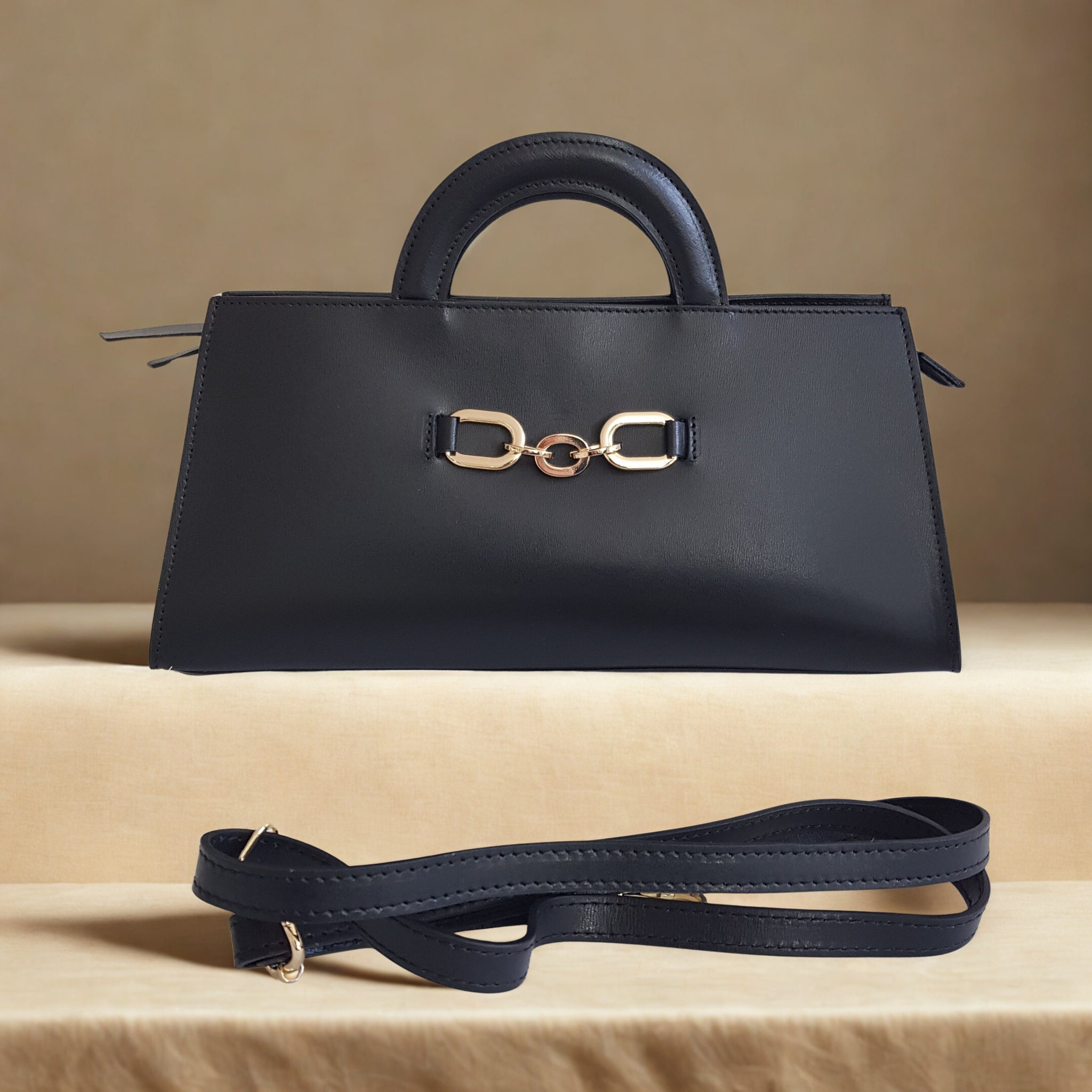 ALIINA nahkalaukku on minimalistinen mutta huomiota herättävä nahkalaukku, jossa yhdistyvät käytännöllisyys ja klassinen tyyli. Laukun etuosaa koristaa näyttävä kullanvärinen solkiyksityiskohta, joka tuo kokonaisuuteen ripauksen ylellisyyttä.