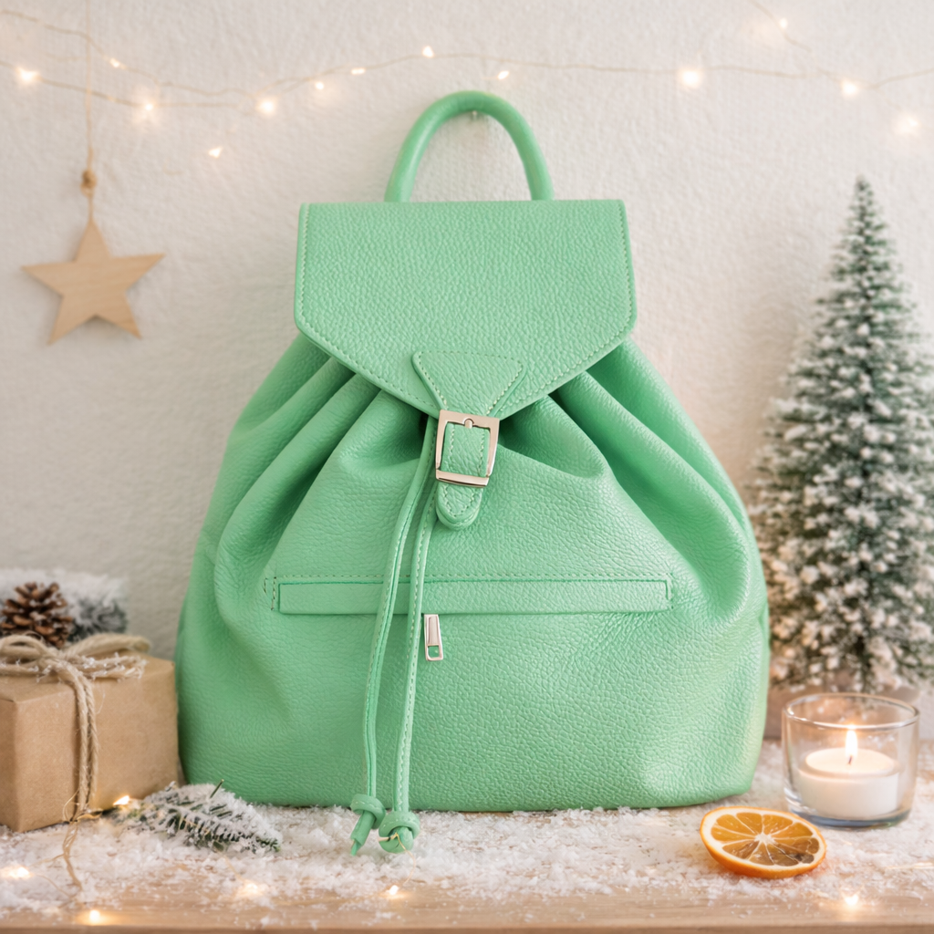 Ihastuttava BEA nahkareppu raikkaassa mintunvihreässä värissä. Laadukasta nahkaa, kätevät vetoketjutaskut ja turvallinen magneettilukitus kiristysnyörin lisäksi. Täydellinen arkeen ja seikkailuihin!