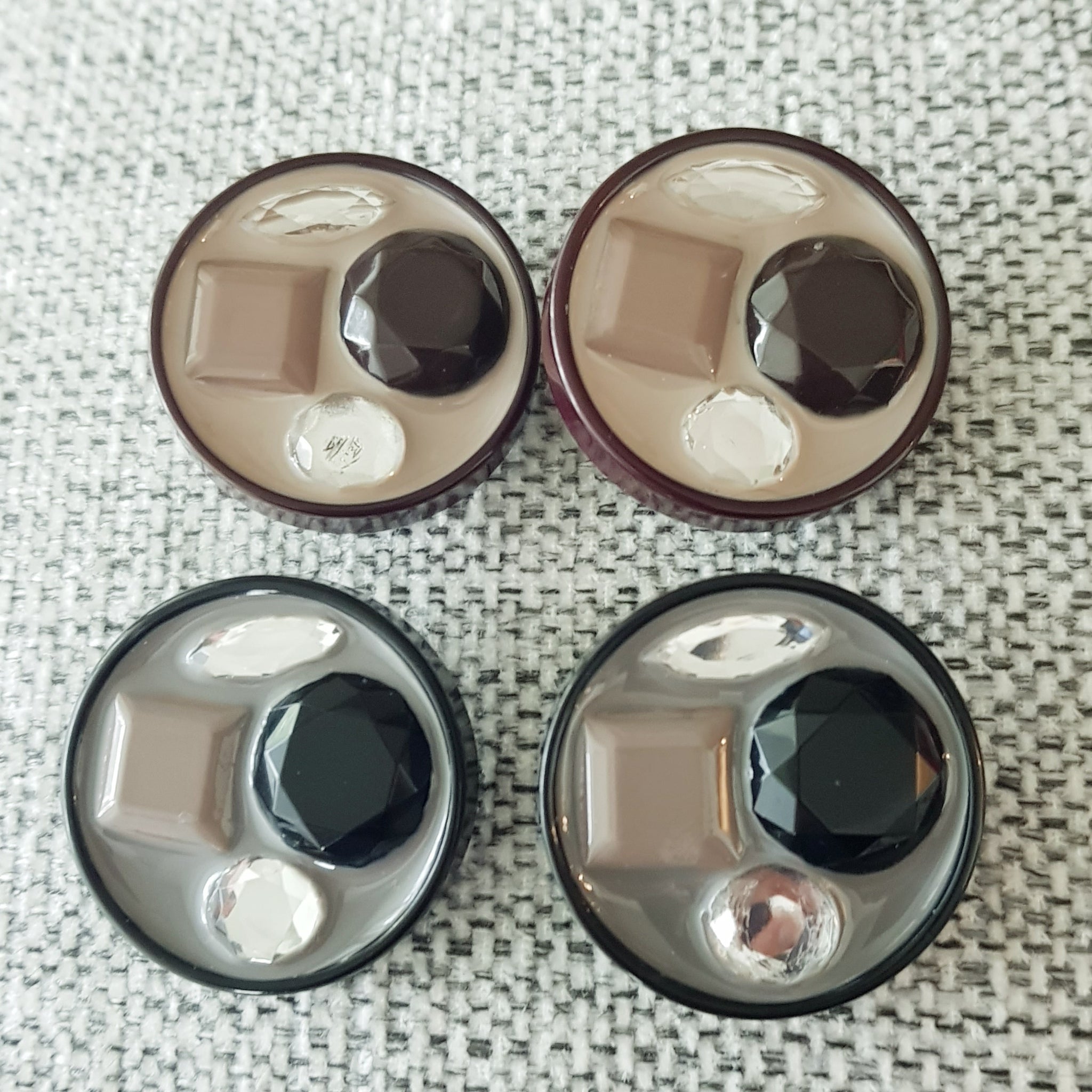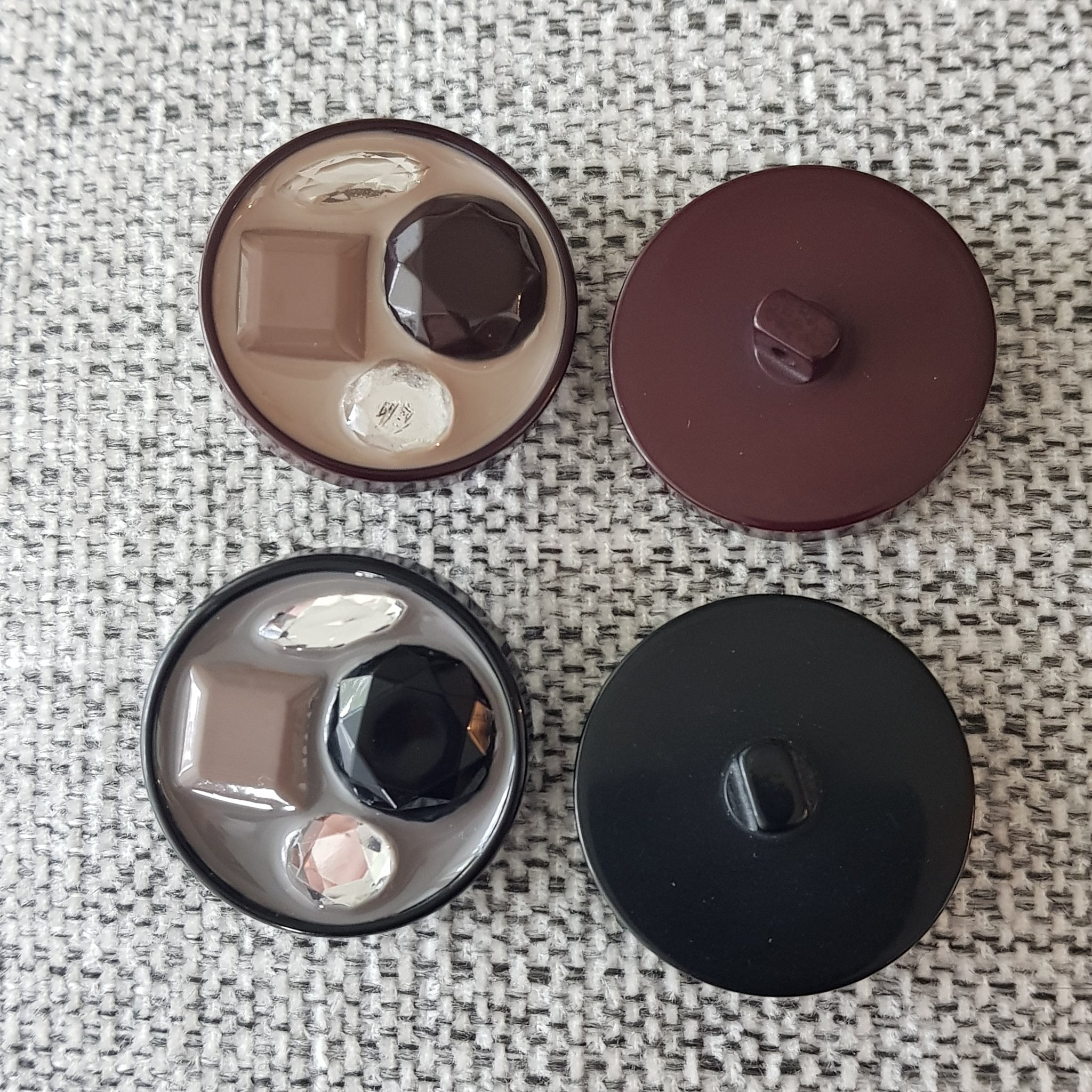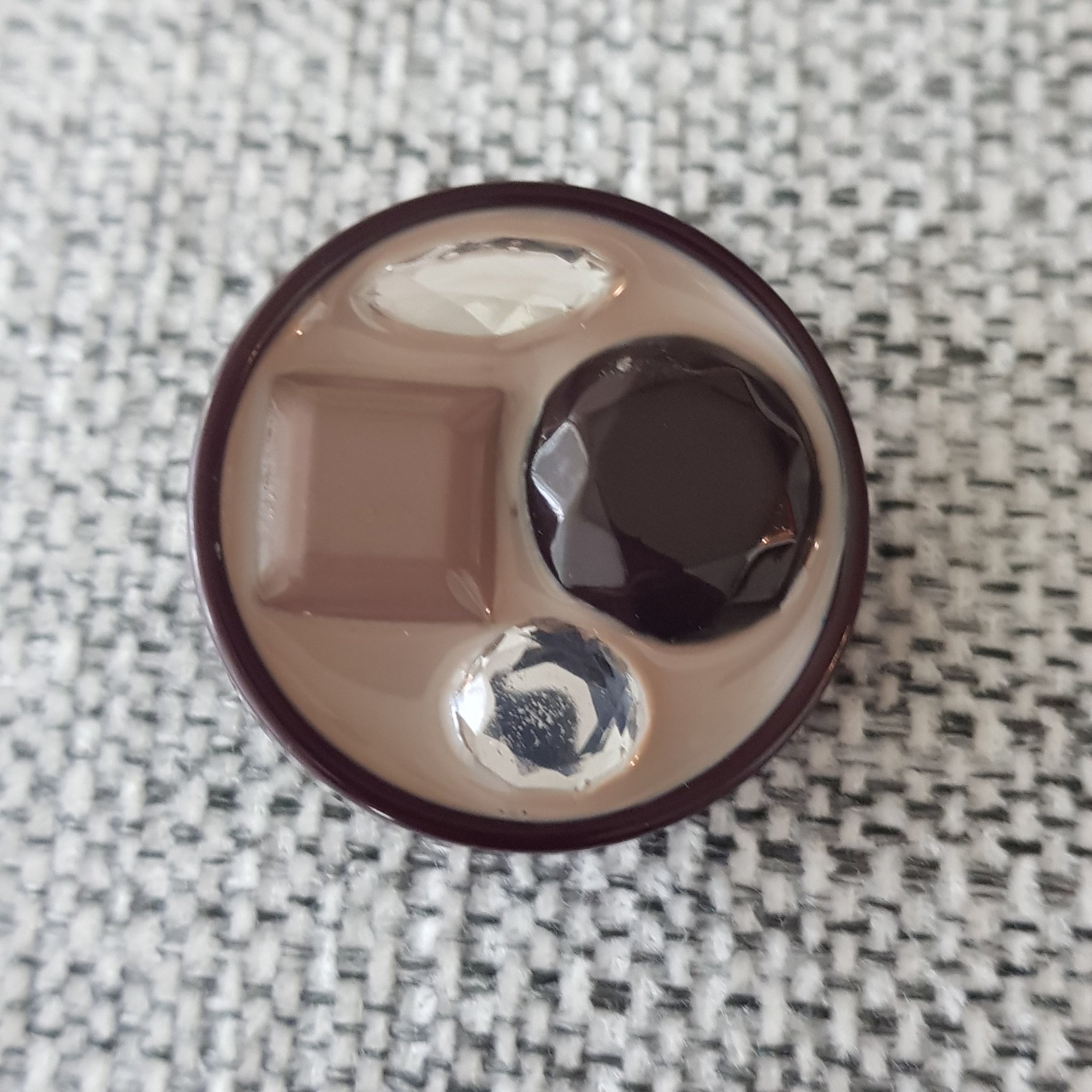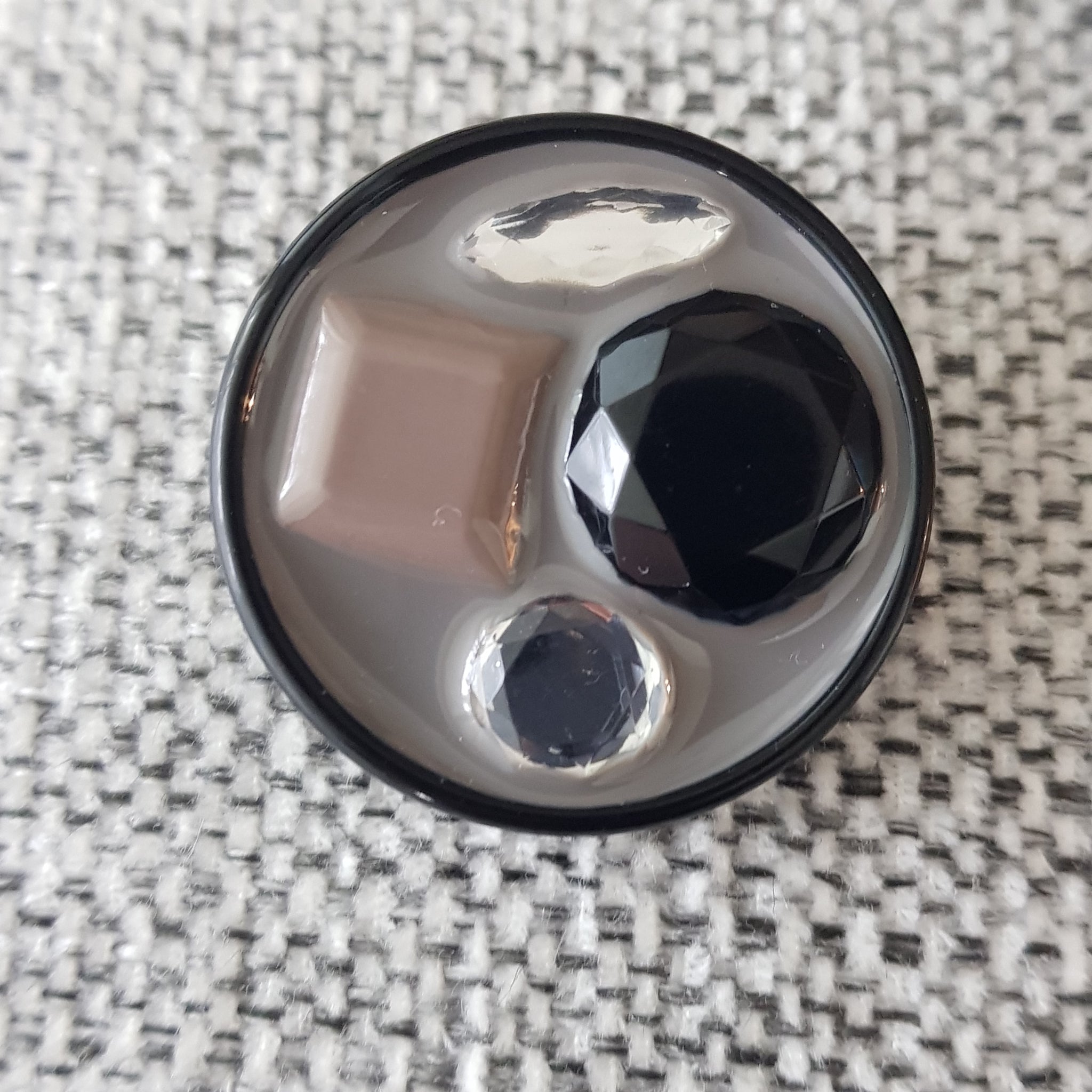 Tyylikäs koristeellinen takinnappi 34 mm, keskellä kiiltävä emali mihin on upotettu koriste helmet. Sopii mainiosti pitkiin neuleisiin ja takin napiksi.