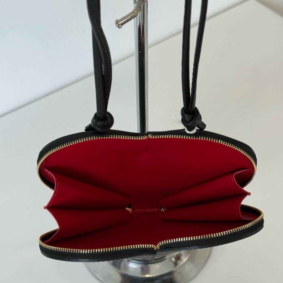 Laukku sulkeutuu vetoketjulla. Sisällä on yksi tilava osio tärkeimmille tavaroille – puhelimelle, korteille ja muille pienille esineille.
